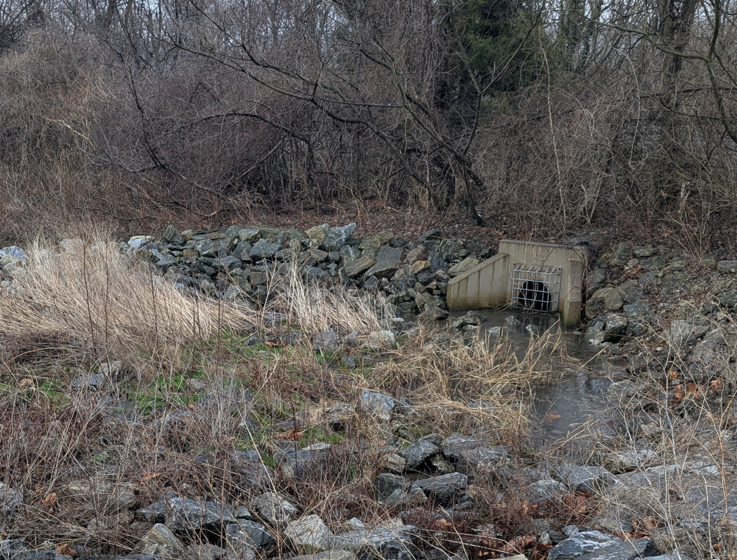 And now I’ve found a drain here, in Pennsylvania. A splendid one, all grey and moody with the tall grasses there among the rocks and the tangle of trees behind. The only problem is that it finds itself right outside an apartment building, along the walking trail. It might be that I can steal a few moments on a rainy weekday when school’s in session to rekindle my old skulking ways. But I think I may have to accept that my goblin days are over.